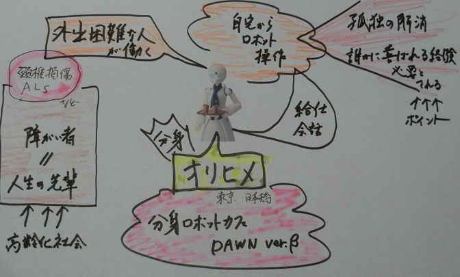 @ 東京の日本橋に、頸椎損傷やALS(筋萎縮性側索硬化症)などが理由で外出困難な人たちが働いているカフェがあります。彼らは自宅にいながら店のロボットを遠隔操作し、サービスの案内や飲み物の給仕などの業務を行っています。分身ロボット「OriHime」を通してお客と交流しています。そのカフェの名は、「分身ロボットカフェ DAWN ver.β」。2021年に常設店としてオープンし、グッドデザイン賞で大賞を受賞するなど、各方面から様々な期待と評価を集めている店です。