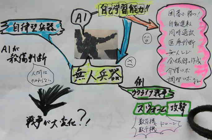 A その一方で、人工知能(AI)搭載の「無人兵器」が開発されています。実際、AIロボットの戦場への利用はすでに始まっています。ウクライナ戦争では、数十機・数千機のドローンが同時展開する「スウォーム(群れ)技術」を使って、都市や軍事施設を攻撃しています。